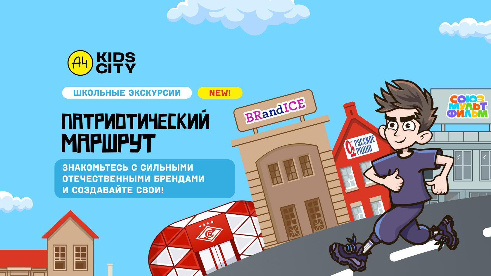 Проходя «Патриотический маршрут» дети знакомятся с интересными профессиями на примере сфер деятельности надежных российских брендов - Союзмультфильм, Русское радио, ФК «Спартак» и BRandICE. В ходе программы каждому ребенку предлагают подумать каким бы мог быть их бренд и в конце они пройдут специальный тест. Тест, который поможет определить сильные их сильные стороны, на базе которых в будущем каждый из них сможет построить свой собственный бренд.